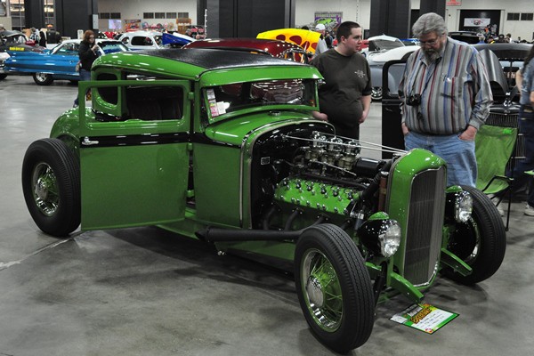 Upstairs on the Autorama main floor, teams of technicians in their stocking feet are aligning screw heads and running Q-tips through the panel gaps, gunning for the big trophy. Downstairs, guys are kicking back with some cold ones, enjoying the band. Down here in the basement, style points are unofficially deducted for looking like you’re trying too hard.