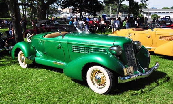 As we say every year in our coverage at Mac’s Motor City Garage, our favorite events of the weekend include the Festival Parade through downtown Auburn on Saturday, along with the mustering of vehicles for the parade on Saturday morning in Eckhart Park, just a short walk east of the museums. The 2018 edition of the Festival was celebrated as The Year of the Speedster, and there was a jaw-dropping assortment of the racy Auburn sports models in a special area near the front gate at Eckhart Park. Naturally, the full complement of Duesenbergs and Cords were also on hand, along with an armada of Auburn vehicles, from the everyday to the exotic. Gallery below—please click on any image to launch a slide show.