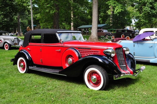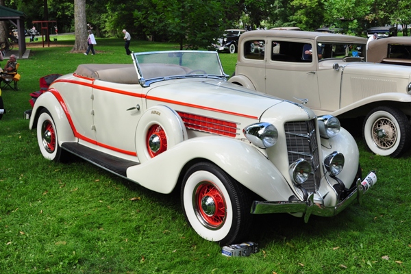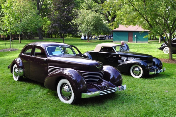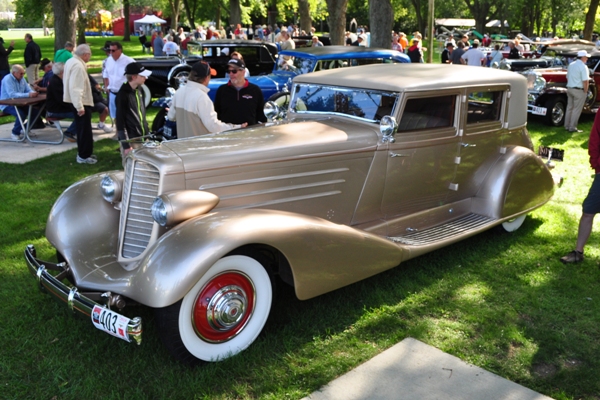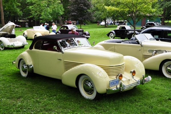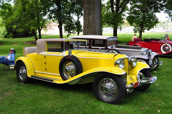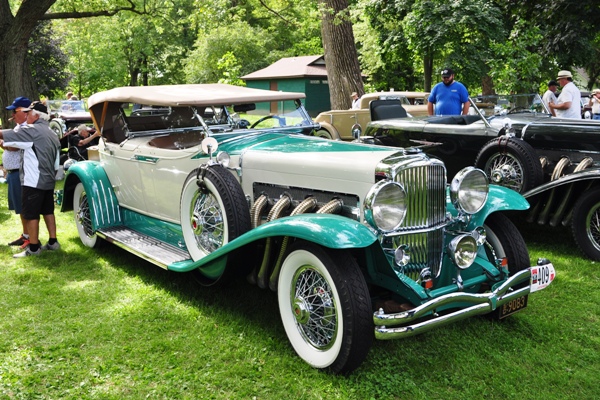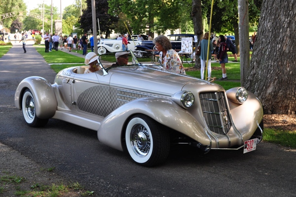 Our favorite events of the weekend include the Festival Parade through downtown Auburn on Saturday, concluding at the town square, along with the mustering of vehicles for the parade on Saturday morning in Eckhart Park, directly behind the museums. This year’s show was memorialized as The Year of the Duesenberg, and as usual, there was a stupendous assortment of mighty Duesenberg J, SJ, and other models gathered near the front gate of the park. Naturally, the parade also featured an awesome collection of Auburn and Cord vehicles, as usual. Please click on any image to launch a slide show.