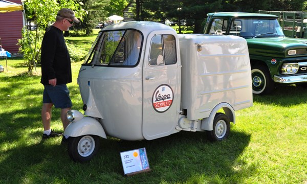 For us, a big part of the Motor Muster’s appeal is the tremendous variety. Here you will find domestic and imported cars and trucks, military equipment, even fire trucks. For example, we spotted a 1934 Ford BB with an original Gar Wood dump body, an exceedingly rare 1966 Oldsmobile Cotner Bevington limousine, even an adorable 1957 Piaggio Ape. Click on any image below to start a slide show.