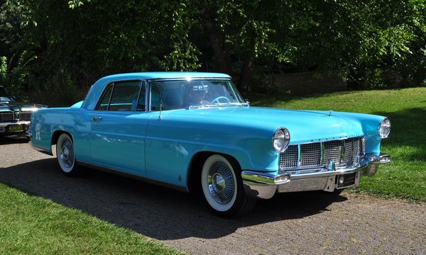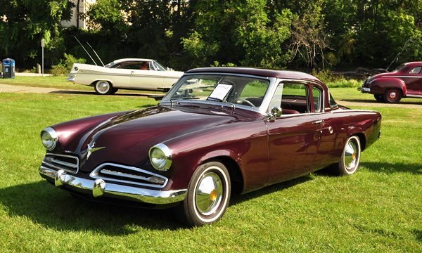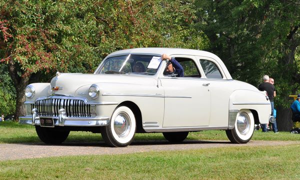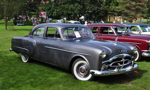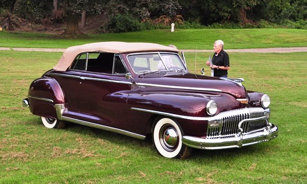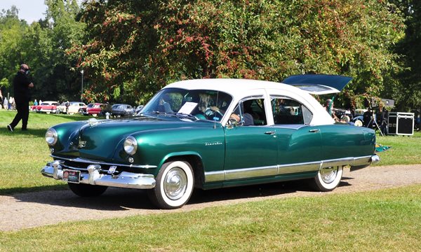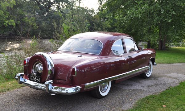 + A 1951 Kaiser Custom Coupe in a beautiful metallic rose color with a continental kit (above). Kaiser coupes are a rare sight. None were introduced until 1951 and four-doors made up the bulk of production.