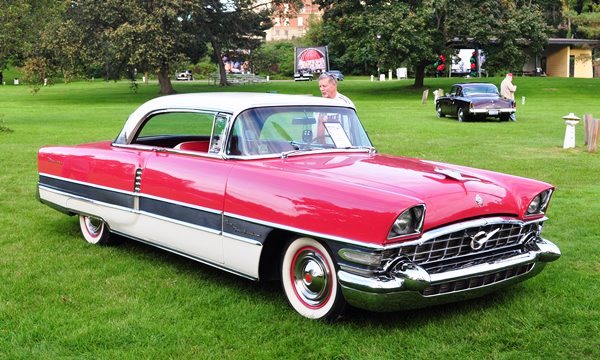 + A 1956 Packard 400 two-door hardtop with factory in-dash air conditioning, Torsion-Level suspension, and push-button Ultramatic transmission — the top of the line from a carmaker nearing the end of the line.