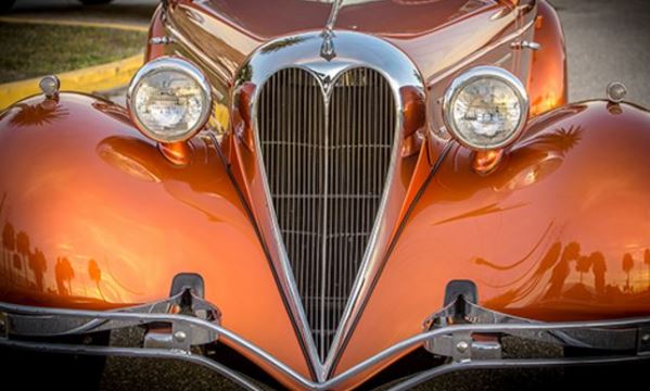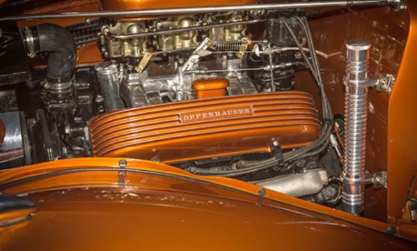 Now the historic hot rod is in search of a new home—headed for the auction stage at the Auctions America Fort Lauderdale sale on March 31-April 2. The gold five-window is scheduled to cross the block on Saturday, April 1, where the auction house specialists estimate it will bring $110,000 to $130,000. Below you will find a selection of photos from Auctions America and from MCG’s coverage of the American Legends exhibit at the Gilmore Museum. Click on any image to start a slide show.