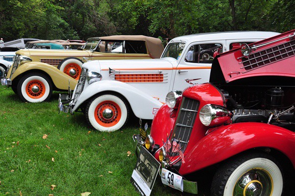 After gathering here, the will cars head out to join the Saturday afternoon parade through the streets of downtown Auburn, then park around the courthouse square for their annual formal showing. These are perfectly fine opportunities to view the cars as well, but the Eckhart Park gathering takes place in a green and shady little glen before the merciless Indiana sun gets too high in the sky. In MCG’s book, that makes it just about perfect. The photos in the slide show gallery below are from yesterday morning’s gathering.