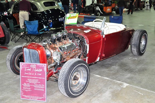 + Another period-perfect rod, a 1929 Model A roadster discovered in a Michigan basement in the summer of 2013 by Chris Fodell. The lowboy, which was apparently built in around 1960 and was last registered in 1982, sports Oldsmobile J-2 power and a LaSalle transmission.