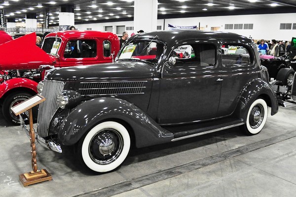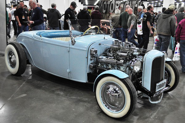 + One of Detroit’s earliest hot rods, a channeled ’32 Ford roadster built by Tommy Foster and now owned by Richard Munz, was brought over by the staff at the Gilmore Car Museum, where it is currently part of the American Legends exhibit.