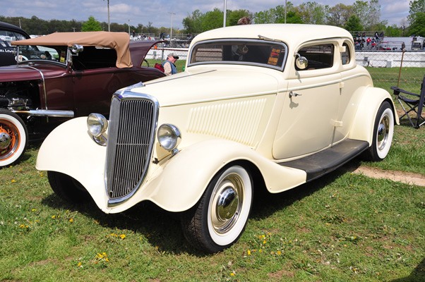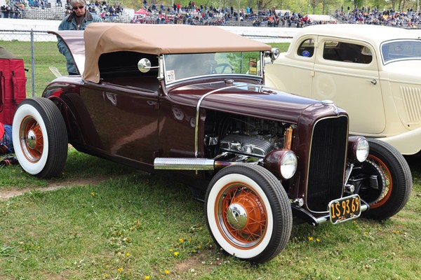 + Jocko McNeil’s fenderless but mostly stock 1931 Ford Model A closed pickup, with real Ford banger power.
