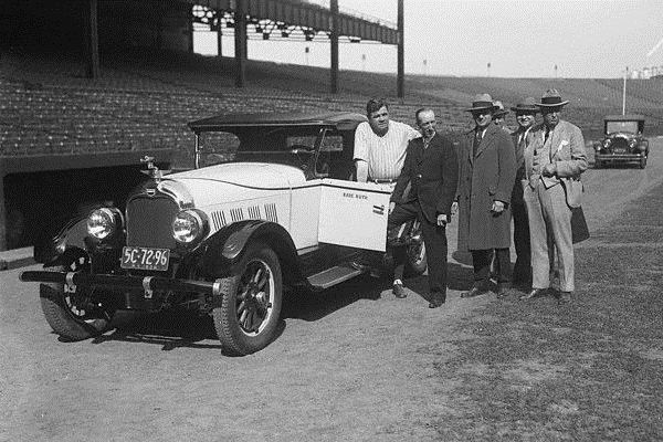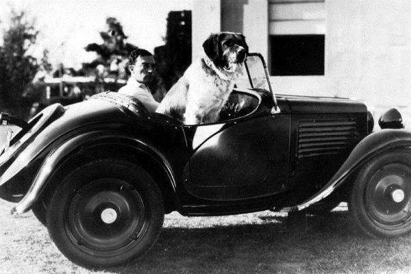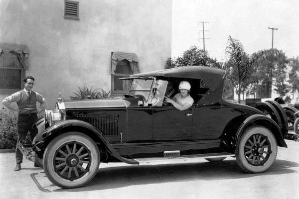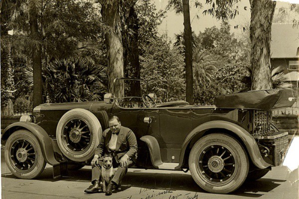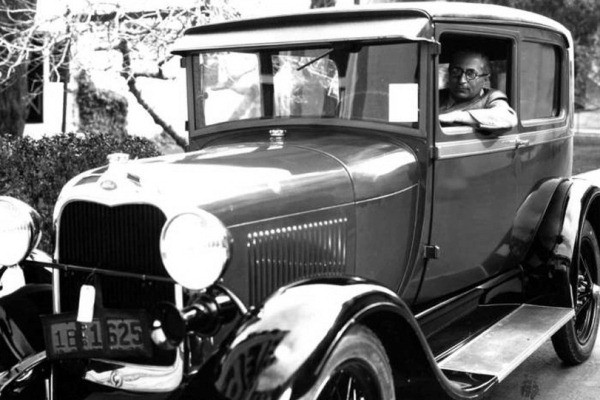 really cool early dealer plate holder on the model a with Louis Mayer behind the wheel!