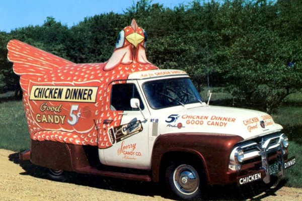 Some promo vehicles have become famous in their own right—the Oscar Mayer Weinermobiles, the Zippo Chrysler. Many were so popular that they evolved through multiple design generations, like the Life Saver and Chicken Dinner Candy vehicles.