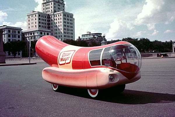 Promo car designs range from the bizarre, like the Moxie soft drink automobiles that were driven from mock horseback, to the almost attractive. We wouldn’t call the Wienermobiles beautiful, necessarily, but in their own way they are enjoyable to look at, and that’s one definition of beauty. As designer Brooks Stevens once said, “There is nothing more aerodynamic than a wiener.” Gallery below.