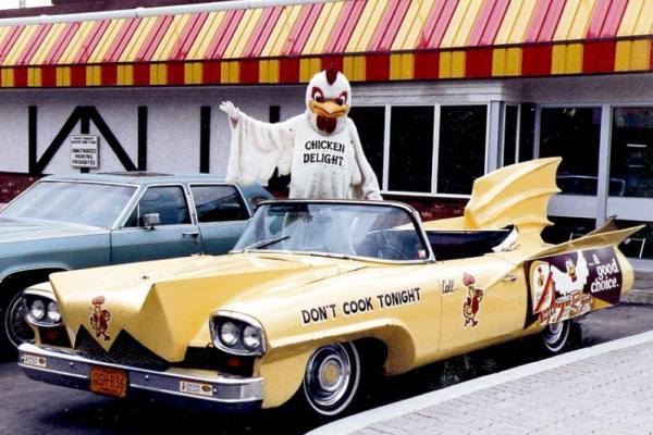 Cars such as these seem to be restricted entirely to America, although I do note one British company did fit a fibreglass orange [as in the fruit] body to a BMC Mini. Fortunately though we seem to have been spared these sort of promotional vehicles in Australia, but then again we Aussies have never been known to buy any thing that uses a gimmick to promote it