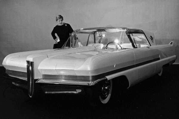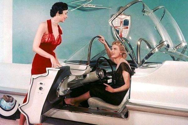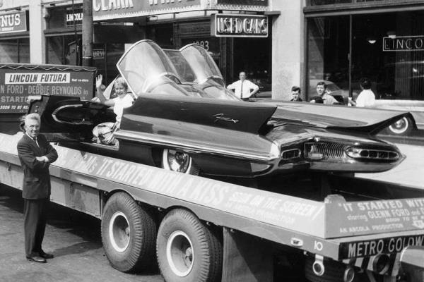 + A well-known 1955 concept shown in the true natural habitat of the Detroit dream car—on the back of a flatbed truck.