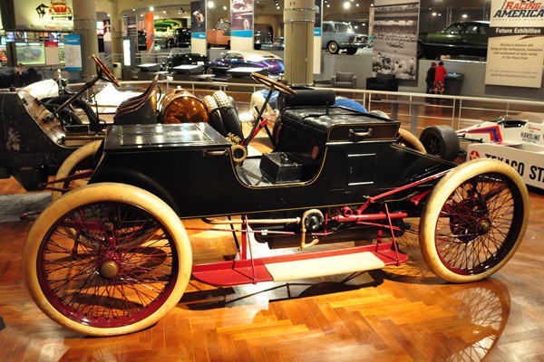The third and current phase is the recently opened exhibit, Driving America. Not a radical departure from the previous one, the new installation is more of a refocusing. Accessions in recent years—the Summers Brothers’ Goldenrod Bonneville streamliner, Ohio George Montgomery’s ’33 Willys gasser—have broadened and democratized the story somewhat, but mainly we are again shown how the motor vehicle changed America, mainly via the auto industry. It’s well worth seeing, even if you have seen many of the cars before.