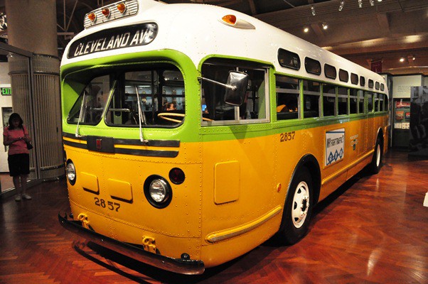 But the best part of a visit to the Henry Ford Museum today is an exhibit adjacent to Driving America called With Liberty and Justice for All. Its centerpiece is a 1948 GMC bus formerly operated in Montogmery, Alabama—the bus in which Rosa Parks, an African-American seamstress, refused to give up her seat to a white man, sparking the Montgomery bus boycott. Superbly curated, staffed with expert guides, this is an exhibit you must see. Parents, take your children. Children, take your parents. For more info, click over to The Henry Ford.org. Meanwhile, please enjoy the slide show below.