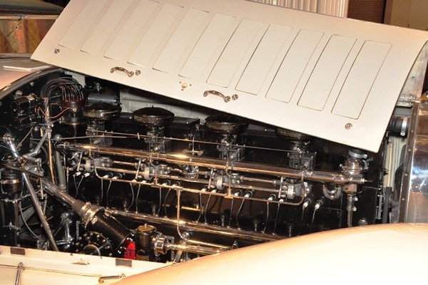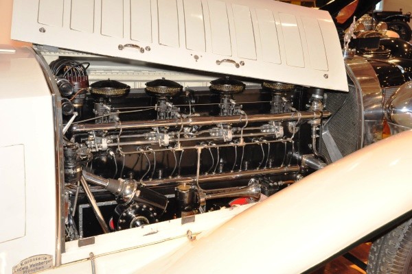 + The star of the Engines Exposed exhibit is without a doubt the magnificent 779 CID straight eight in the museum’s Bugatti Royale. This example, the Cabriolet Weinberger, was once owned by General Motors executive Charles A. Chayne, who replaced the original single Bugatti carburetor with four Carter downdraft units, and they’re still on the car for us to see today.