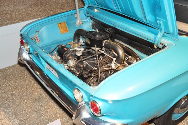 Unfortunately, due to the manner in which the cars are posed and illuminated in the museum, on many of the cars you won’t be able to see anything under the hood. Nothing. MCG is six-feet-three, and standing on his tiptoes with a digital SLR and large flash unit stretched overhead, he could just barely obtain usable images of many of the engine compartments. That was disappointing.