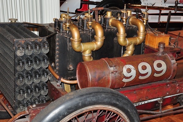 + Not part of the Engines Exposed exhibit but available for your viewing amazement every day of the year is the monstrous powerplant in the 1902 Ford 999. With a bore of 7.25 inches and a stroke of 7.00 inches, the enormous four-cylinder engine displaces 1155.9 cubic inches. By the way, the camshaft and crankshaft on Henry Ford’s racer are permanently exposed, too.