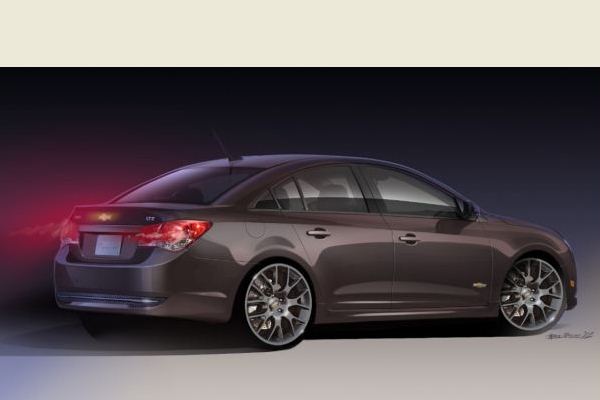 + The Cruze Upscale Concept, featuring Burnished Brandy Metallic exterior paint with a brown leather interior. Mods include Black Ice exterior trim, adjustable coil-overs, and four-piston front brakes.