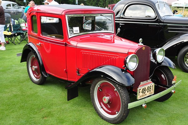 + Surely the greatest name ever for a brass age automobile: the 1911 Oldsmobile Autocrat. Top that, Bruce McCall. Displayed by Bill and Barbara Parfet.