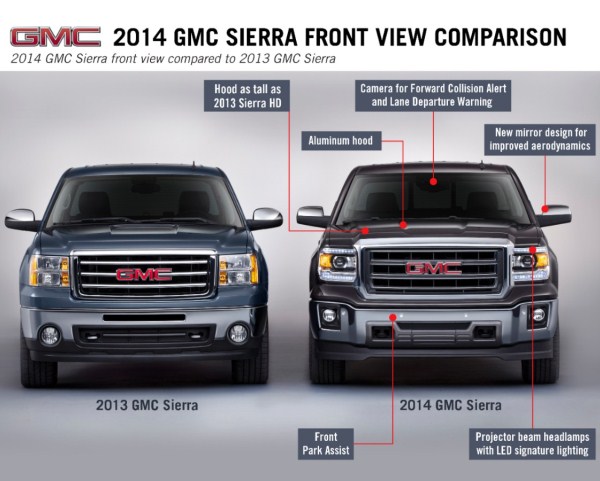 Mac’s Motor City Garage will be circling back with more technical details and analysis, but for now, here are the pretty pictures released by GM today. First, here’s a graphic detailing the exterior design changes on the GMC version, 2013 versus 2014.