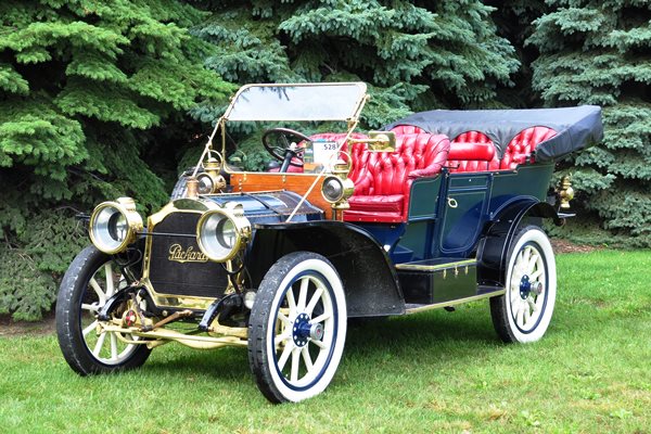 + For sheer gravitas on the boulevard, it would be hard to top the big, beautiful 1910 Mitchell S touring car owned by John B. McMullen. We don’t know what to call the unique color—Dark Mustard? Latte?—but it’s stunning on a brass-age car.