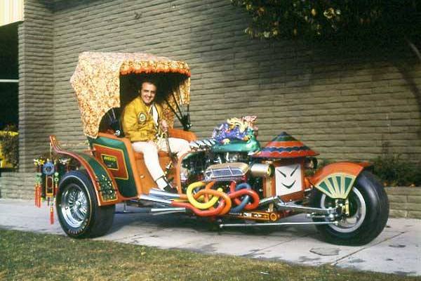 Having been George Barris’s historian for the past 20 years I note only a couple of Barris machines in this collection. In their contemporary life, the Love Machine Van and the Rickshaw Bike were the best show cars of their age. Models were made of them and millions of people lined up to see them at a Autorama’s and other indoor cars shows. Seen in that light, what else is shown in this pictorial shows some inventively quirky, nonsensical styling that is beyond reason. Thank god for such humor and automotive insanity in a world bound by convention.