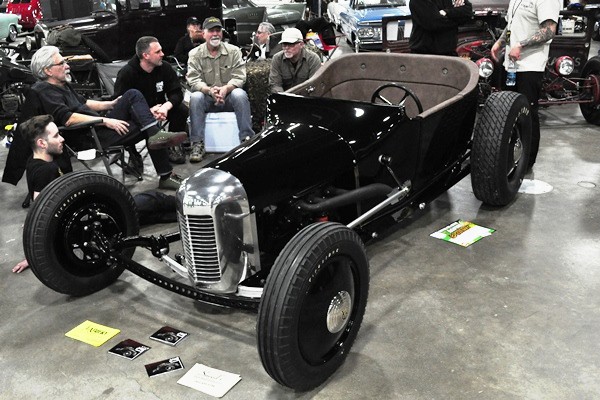 + Thom Metz’s ’27 Ford track roadster: Whippet grille shell, turtle deck with a lid full of louvers, circle-jerk nerf bars