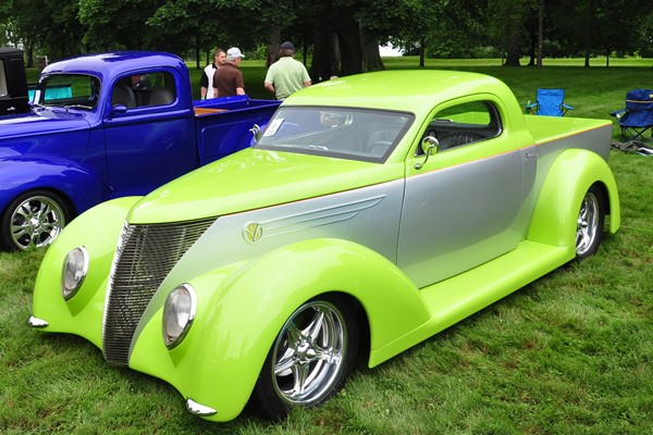 Since folks are bound to ask, the hood ornament above is from a 1937 Terraplane (owner, Bob Elton). Now, is this an awesome piece of automotive hardware or what? If you looked high and low, could you find a better example of the Streamline Moderne movement in design, materials, and spirit?