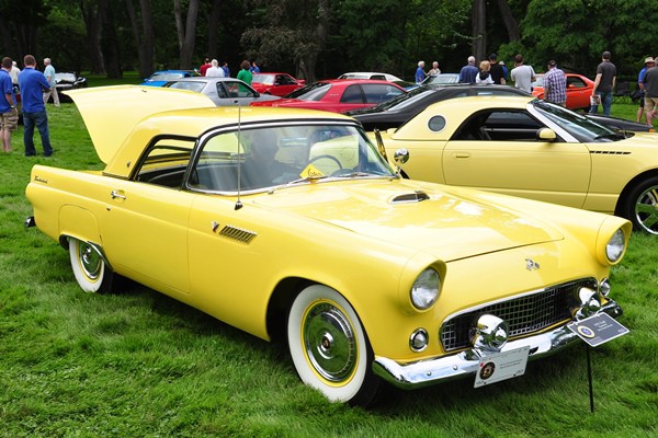 That’s a 1955 Thunderbird. 1955 didn’t have the side vents between the front wheels and doors. 1956 added those. 1957 had tailfins.