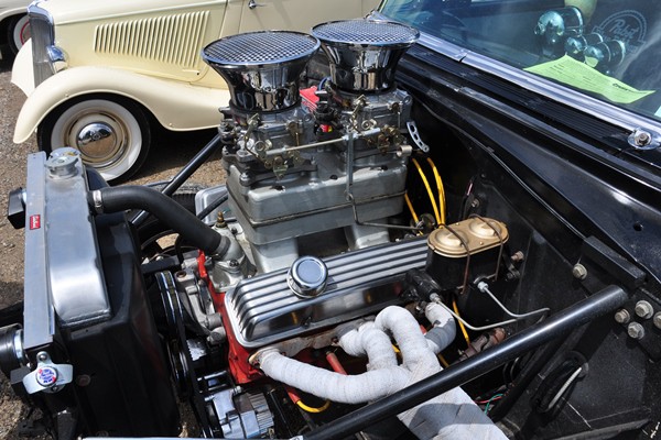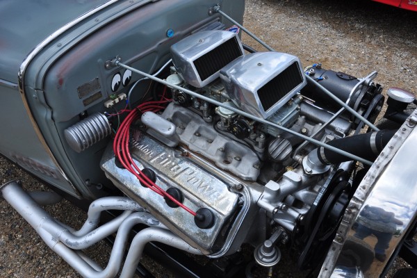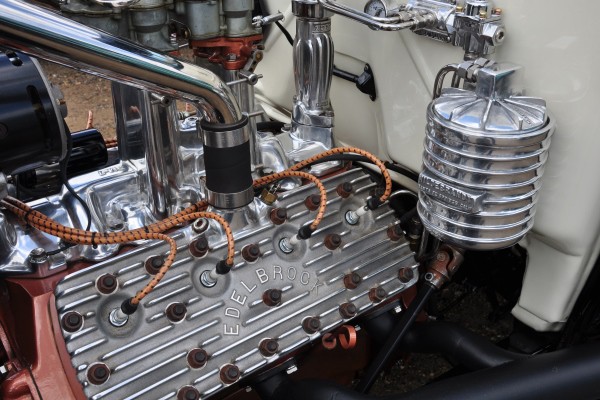 + A nicely detailed Ford flathead V8 with block-script Edelbrock heads and a beehive accessory oil filter