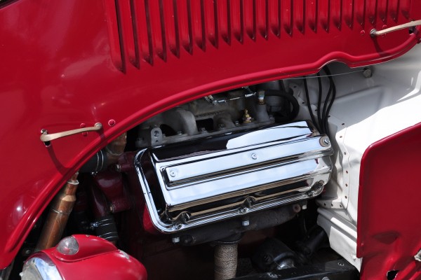 + An early Chrysler Hemi engine running dual quads and a pair of marine-style flame arrestors