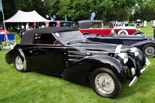 + Founders Trophy for Best in Show among the American cars was the stunning 1931 Duesenberg J Derham Tourster displayed by Margie and Joseph Cassini III of Bernardsville, NJ. It’s hard to imagine a more sporting Duesenberg with a rear seat.