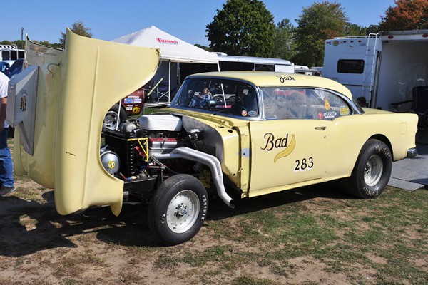+ Rusty Sampsel’s Bad Banana ’55 Belair, a real-deal gasser built by his father back in the day.