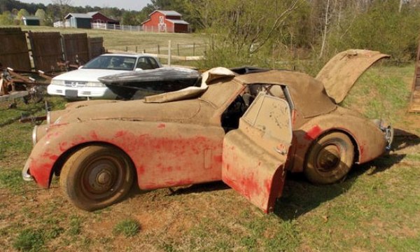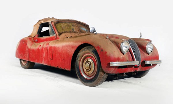 Tired of hearing about so-called barn finds? This looks like the real thing: a Jaguar XK120 just awakened from a 40-year sleep in a Georgia barn. Here’s the story and a big photo gallery. –Auctions America photo