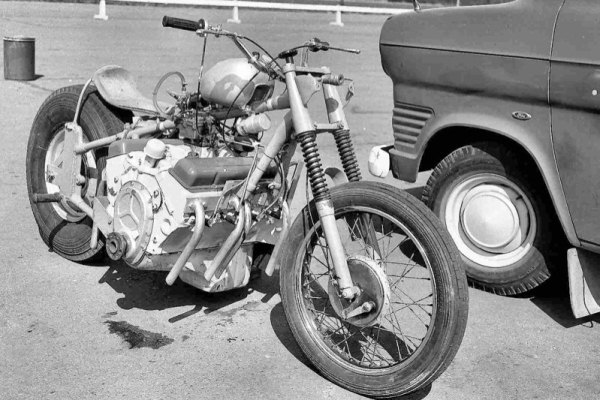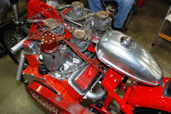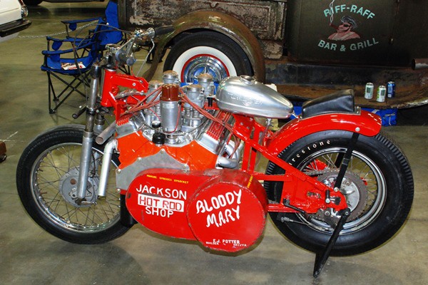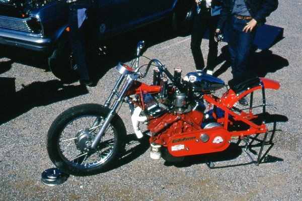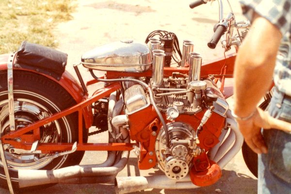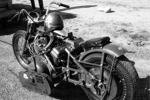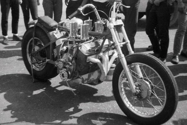 As a teenager EJ experimented with farm machinery and motorcycles, including a Harley flat-tracker and a Vincent Black Shadow. In 1960, only 19, he built his first V8 bike, cutting apart a Harley big twin with a torch and wedging a 283 Chevy within the frame tubes. After attempting to cobble together a centrifugal clutch, he gave up and hooked up the Chevy direct drive.