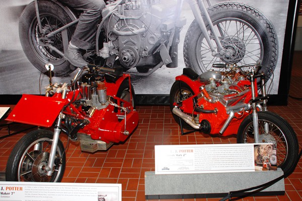 After surviving over a dozen years on the road with this show, EJ retired the two-wheelers and launched a second successful career as a tractor puller. All the tractors were powered by WWII-era Allison V-1710 aircraft engines, a lifelong passion for EJ (his daughter was named Alison). Fabricated with theatrical roughness, the pullers carried the names Tractor, Ugly Tractor, and Double Ugly, and won two national championships. Along with the bikes and tractors, some other EJ Potter productions: