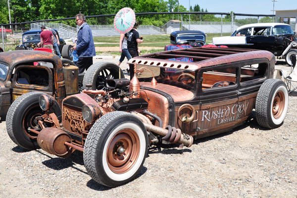 So many car events, so little time. MCG had multiple stops to make this day, but he carved out an hour or two for Sins of Steel, the awesome retro-rodding meet in little Davisburg, Michigan, northwest of Detroit. Attractions included live music, minibike races, and a pin-up contest, but MCG was laser-focused on the cars, naturally. From among a big turnout of cars this year, a few of his favorites included: