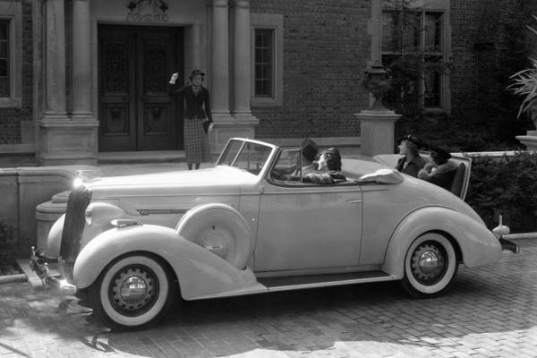 + Two styling trends were in full flower in 1936: the Touring Sedan body style with integrated trunk compartment at the rear; and rear fender skirts, increasingly popular as a dealer accessory. Fender skirts provided a more contemporary, quasi-streamlined, expensive look. Note all the fender skirts on display in the photo gallery below. Click on any image to start a slide show.