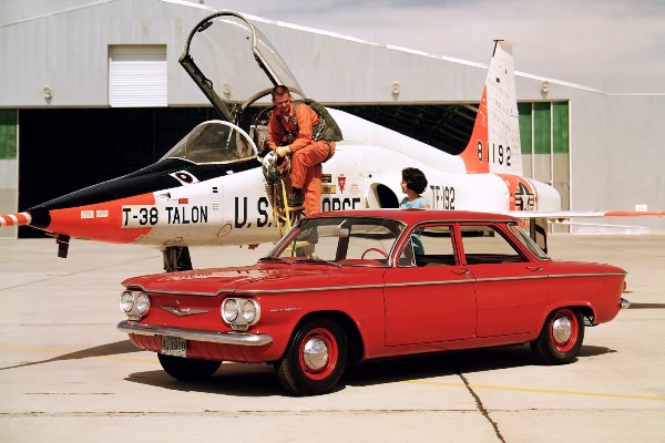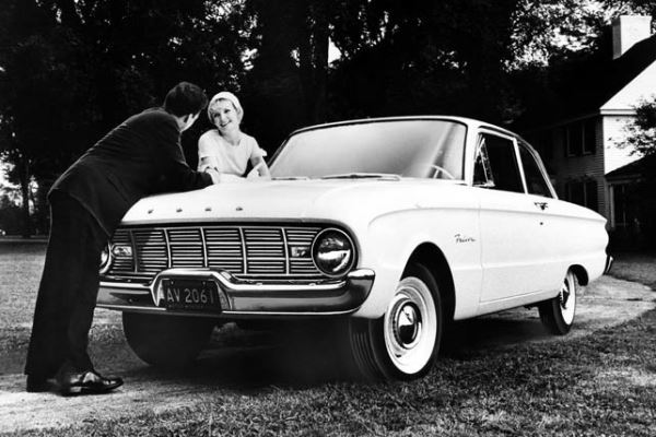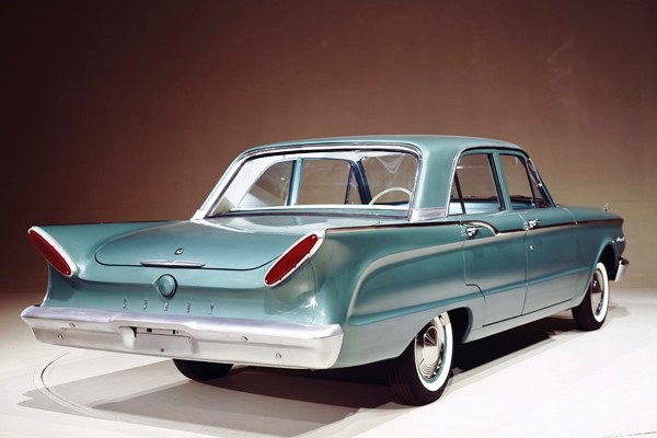 + In a related trend, the Detroit Three introduced their first compact cars to the American postwar market: the straightforward Ford Falcon, the innovative Chevrolet Corvair, and Chrysler’s boldly styled Valiant. (Mercury dealers also got a compact for 1960 with the Comet, which was designed as an Edsel.) At the time, the appearance of imports on American roads was only part of the perceived threat. Foreign cars, as they were then called, held 8 percent of the new vehicle market in 1958, with Volkswagen leading the category by a fair margin and the Renault Dauphine in second place.