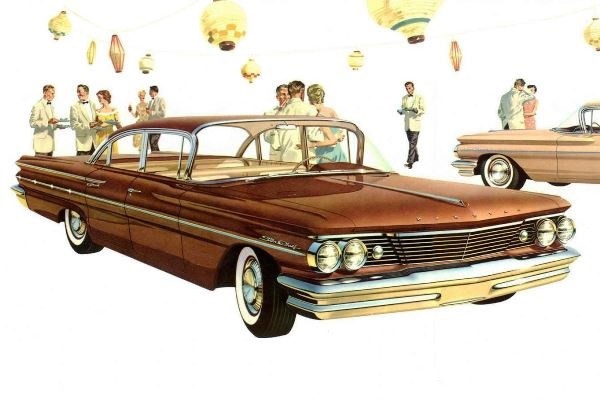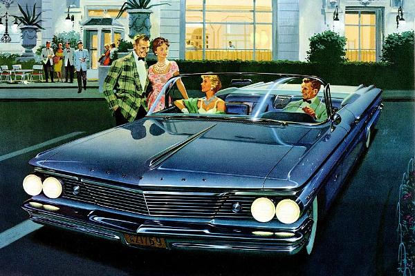 + After nearly a decade of longer, wider, and lower in automotive design, with more chrome and taller tail fins every year, by 1960 American consumers had begun to cry enough. Public opinion was now pushing back against the absurd and often comical excesses, in the press, on television, and in popular books like The Insolent Chariots. The acme for chrome trim arrived in 1958 (Buick, Oldsmobile) while fins reached their maximum height with the 1959 Cadillac. For 1960, the Motor City was retreating into quieter, less ostentatious design.