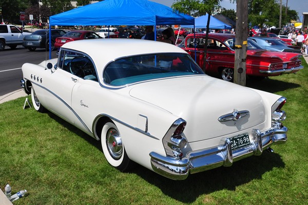 + An immaculate white 1955 Buick Century Hardtop sporting four portholes per fender, wide whitewalls, and a 322 CID Nailhead V8. The Century was Buick’s hot rod for ’55.