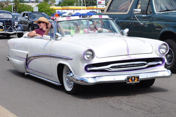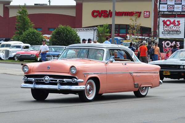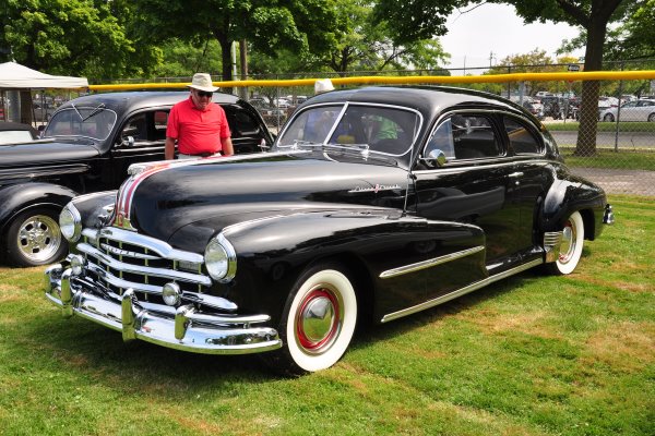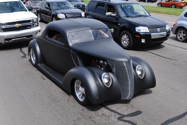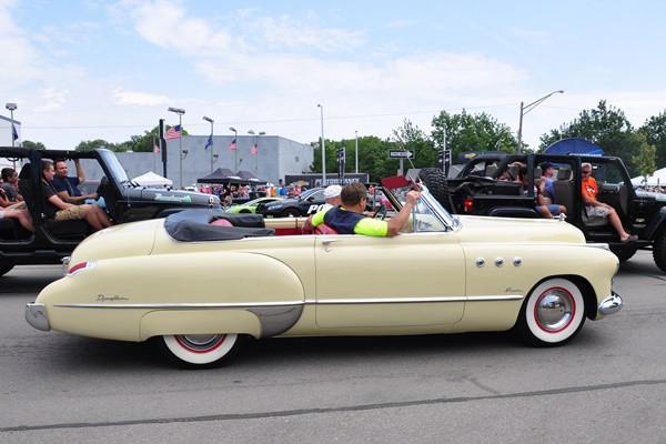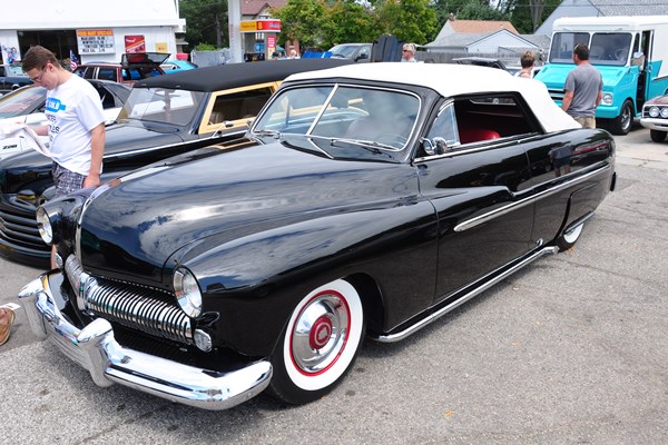 + A 1939 Graham sharknose club coupe done up in 21st century street rod style (lead photo above). We’ve seen this car before, but it looked even finer rolling on the boulevard.