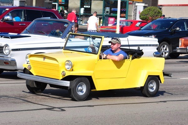 + A bright lemon yellow King Midget, the adorable microcar built from 1946 to 1970 in Athens, Ohio. Finally, an answer to the question: What can you do with a King Midget? It makes a perfect Dream Cruiser.