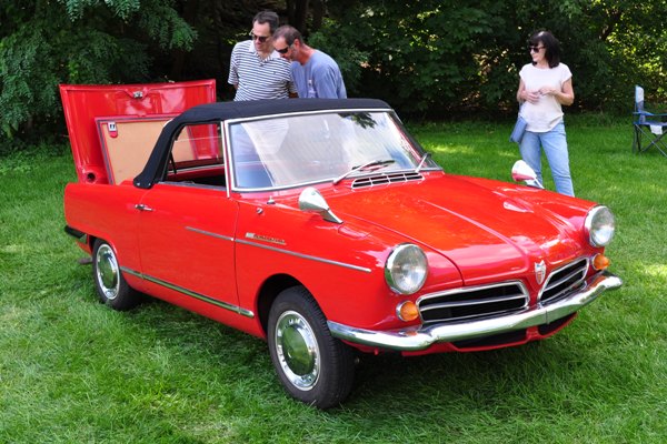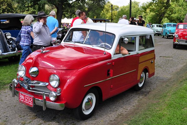 Here an orphan can also be a discontinued brand or division from the current Detroit automakers: for example, DeSoto, Edsel, Imperial; more recently Plymouth and Pontiac. (Individual examples must be manufactured no later than 1991.) The Orphan Car Show folks also take in the former Canadian brands of the Motor City manufacturers (Monarch, Fargo, etc.) as well as foreign brands that are no longer imported to the USA—Citroen, Renault, and so on. Corvairs are included, too, partly because they’re local favorites, manufactured just down the road in the big plant at Willow Run, partly because they’re the red-headed stepchildren of the automotive world. At the Orphan Show they have a home.